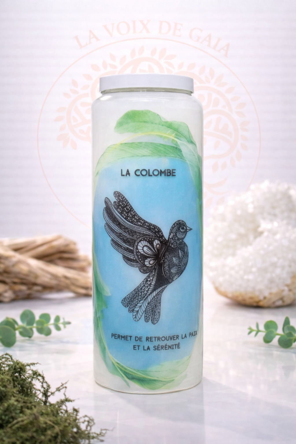 Allumez la flamme en conscience, puis visualisez la colombe à vos côtés, diffusant une énergie de paix et de lumière.